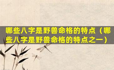 注意:以上仅为部分野兽命格八字的特 🐈 点,具体命格分析还需结合八字整体格局和用神喜忌等因素综合判断。