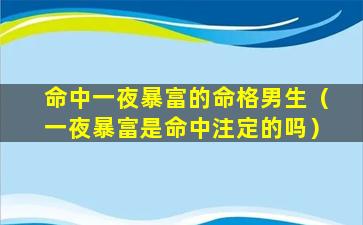 一夜暴富的八字特征 🦍