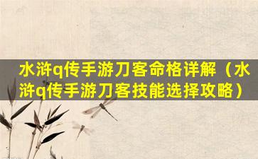 水浒 🍀 Q传手游 🌵 刀客技能选择 🍀 攻略