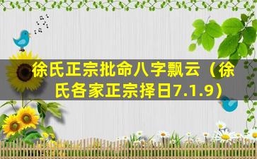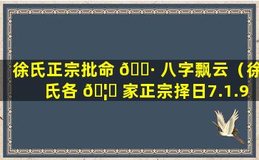 徐氏正宗 🌸 批命八字 🌾 飘云