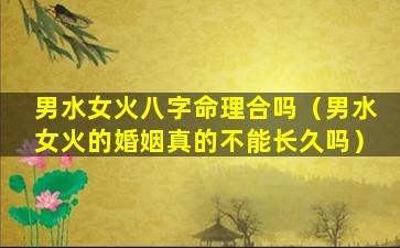 八字命理中 🐳 ,水火相克。因 🐧 此,“男水女火”的八字命理 🌳 。并不相合