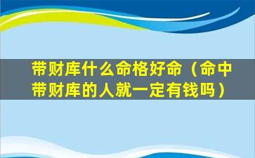 命中带财库是指一个人的生辰八字中存在某些特定组合,被认为有财运方面的潜在优势。这。并不保证这个 🐦 人一定有钱