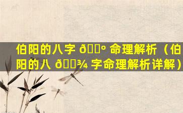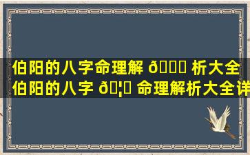 伯 🌺 阳的八 🐈 字命 🐞 理解析大全图