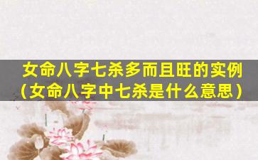 在八字命理学中,“女八字七杀”是“指女”性八字命,局中 🦄 出现 🍁 七杀星代表着一种不利因素。