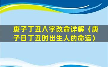 庚子丁丑八字 🐅 分 🦆 析 🐞