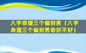 偏财在八字中代表意外之财或偏门之财,男,命八字,带,三个偏财主多财多福一生衣食无忧而且容 🐛 易得贵人相助。