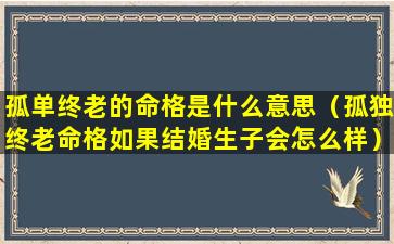 在传统命理学中,"孤"单,终老指的是一种命格其特 🌹 点如下:
