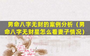 八字中无财 🐶 星对于男命的婚姻影响如下: