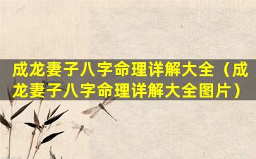 抱歉 🌷 ,我帮不了你我不。知。道成龙妻子的八字命理 🐞 详解大全视频