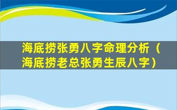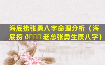 海底 🐘 捞创始人张勇八字命 🐯 理分析 🦅