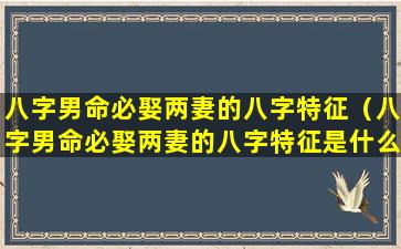八字命理中并没有所谓的八字“男命必娶两妻的 🕊 ”特性男。女命理对配偶数量的推断需综合考量八 🍀 字,不。可单凭某一特定特征判断