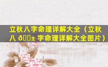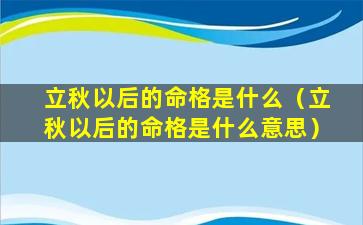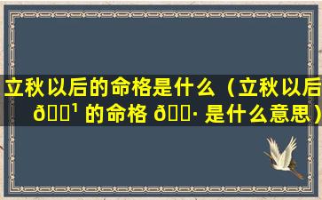 “立秋以后 🐠 的命格”这句话没有特定的含义,因为它不是一个公认的占 🐋 星学或命理学概念。