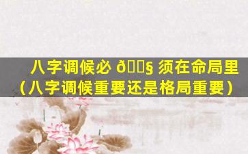 八字 🦄 调候和八字格局 🐘 在八字命理中都非常重要,但孰重孰轻取决于不同的情 🌻 况和角度。