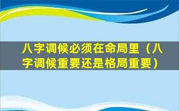 因此,“八字调候必须在命局 🐟 里”的含义是: