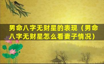 男命 🐞 八字无 🦉 财星婚姻 🕊 状况