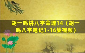 胡一鸣讲 ☘ 八字 🦈 命理 14