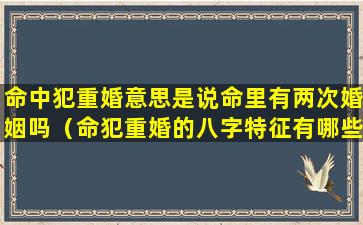 “命中犯重 🐞 婚”是一个命理术 ☘ 语,指,的是 🌾 ,出生时八字中带有某些组合可能会导致一个人在婚姻方面出现不顺利的情况如: