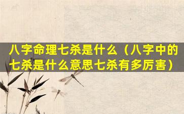 七杀 🌸 是八字中十神之一,代 🦄 表着命中注定的一种凶星。在八字,学中七杀是一,种偏官主凶险、暴、力,伤。害破坏性极强