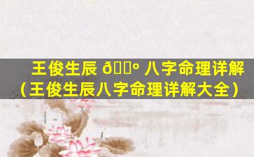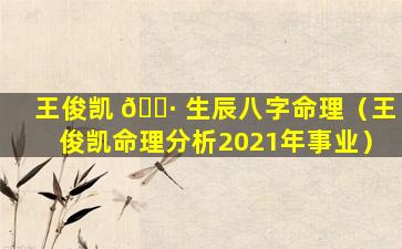 总体来说,王,俊凯命中事业运较好有才华有、想,法事业发展顺利。感,情运。势。相对薄弱需 🌵 要仔细甄 🦁 别异性缘健康运势要注意水湿之症