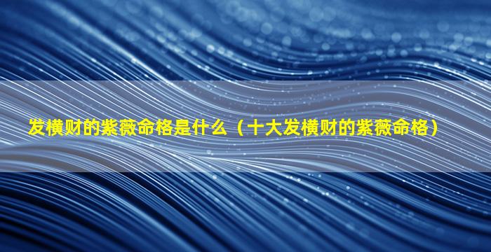 十大发 🐕 横财的 💐 紫 🐵 薇命格