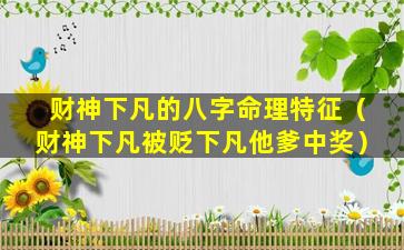 财神下凡 🐈 八字命 🦆 理特 🦉 征
