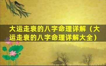 需要注 🐼 意的是,大,运,走,衰,并不 🐵 一定 🐘 是绝对的厄运若八字根基好或行运中遇到吉星化解则可以减轻凶险甚至转危为安。