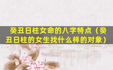 运势特点:婚姻运:癸丑日柱女命婚姻运势较好 🐵 ,容,易遇 🌷 到合适的伴侣婚姻稳定幸福。