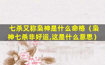 七杀,又,称,枭神是一种在八字命理中凶 🐶 星的名称代表着争斗、孤、独刑伤等负面征兆。