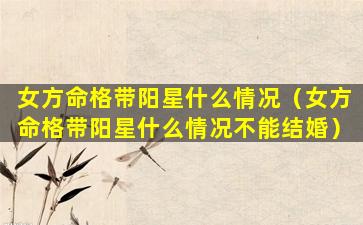 命格带阳星的女 🍁 性 🌵 不能结婚的情况 🐼 :