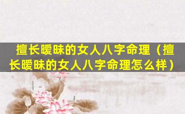 我没有关于“擅长暧昧的女人八字命理的 💮 ”信息。