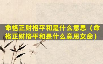 命 🐈 格 🐞 正财格 🐧 平和的具体含义:
