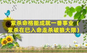 紫杀命格是一 🐡 种命理学概念,并不代表实际的个人能力或命运。没。有任何证据表明紫杀命格的人注定会成就一番事业