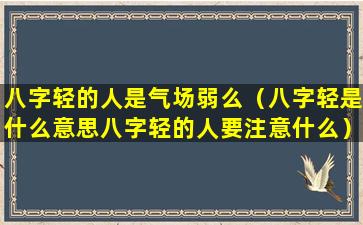 根据八字命理学的说法八字,“轻”是,指一个人的出生八字中日主出生日 🦍 的(天干的)五行力量较弱八字轻。并。不一定等同于气场弱