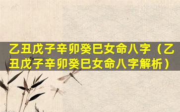 乙丑戊 🐶 子辛卯癸巳 🌳 女命八字详解