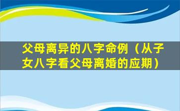 从子女的八字看父母 🐟 离婚 🦍 的 🪴 应期