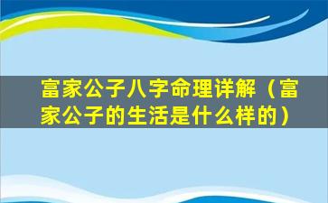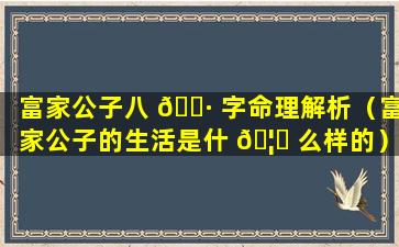 富 🐒 家公子八字命理特 🕊 点 🦢
