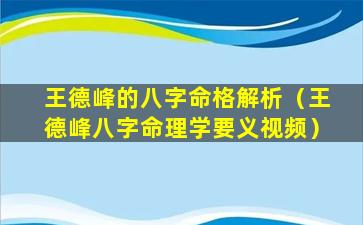 视频王德 🕊 峰八字命 🌾 格解 🐺 析