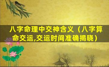 在八字命理中,“交神”是指日支与时支相合产生的神煞日支。代,表命,主本人时支代表命主晚年运势和子女缘分因此交神 🐎 对于命主婚姻子女和晚年运势、都。有着重要的影响