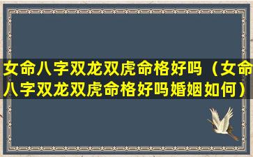 婚姻特点:女性双 🐱 龙双虎命格 🐧 的婚姻 🐬