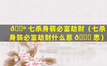 “七杀身弱必富劫财 🦉 ”这 🐶 句话在命理学中有一定含义。