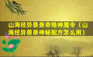 山海经异兽录神 🍁 秘配 🦋 方使用方法: