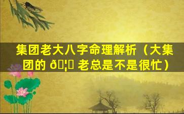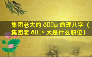集团老大的命理 🐋 八字