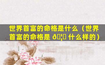 在传 🕸 统命理学中,没有专门针对世界 🌷 首富的特定命格。根,据一些命理学大师 🐱 的富贵格局以下命格可能与世界首富产生一些关联: