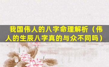 命理学是一种基于出生时间和地点进行预测和判断的中国 🦟 传统占卜方法。它。认为一个人的出生时间包含着其命运和性格的信息根据命理学的说法,伟人的生,辰。八字可能具备某些特殊的格局或组合预示着他们具有非凡的才华和运势