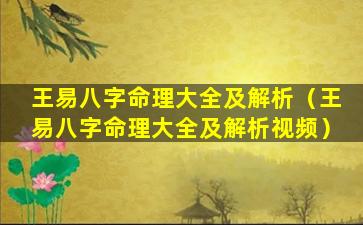 解析视频王易八字命理 💮 解析王易:老师讲解八字命理的基础知识 🐟 和分析方法
