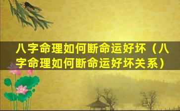 八 🦈 字命理 🌷 判断命运 🐯 好坏的方法