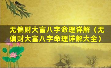无偏财大富八 🌷 字命理详解 🐦 图 🐟