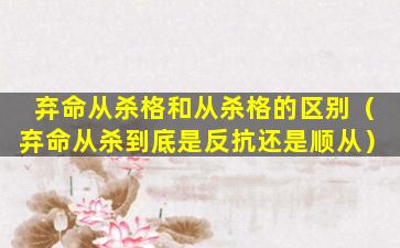 弃命 🐴 从杀格和从杀格的区别 🐒