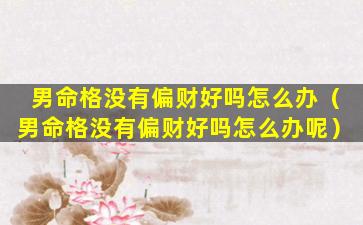 男命格没有偏财并不一定意味着财富运势不好。可以通过勤奋努力、投、资、理财拓展人脉调整心态等 🐛 措施来弥补,创。造自己的财富
