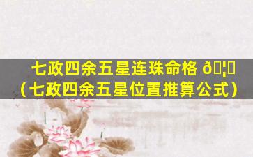 七政四 🦁 余五星连珠命格是一种罕见的命格,指一,个人出生时七政四余和五星都连珠。这种命格的,人,往。往具有非凡的能力有很高的成就但也有可能经历坎坷 🌿 和波折